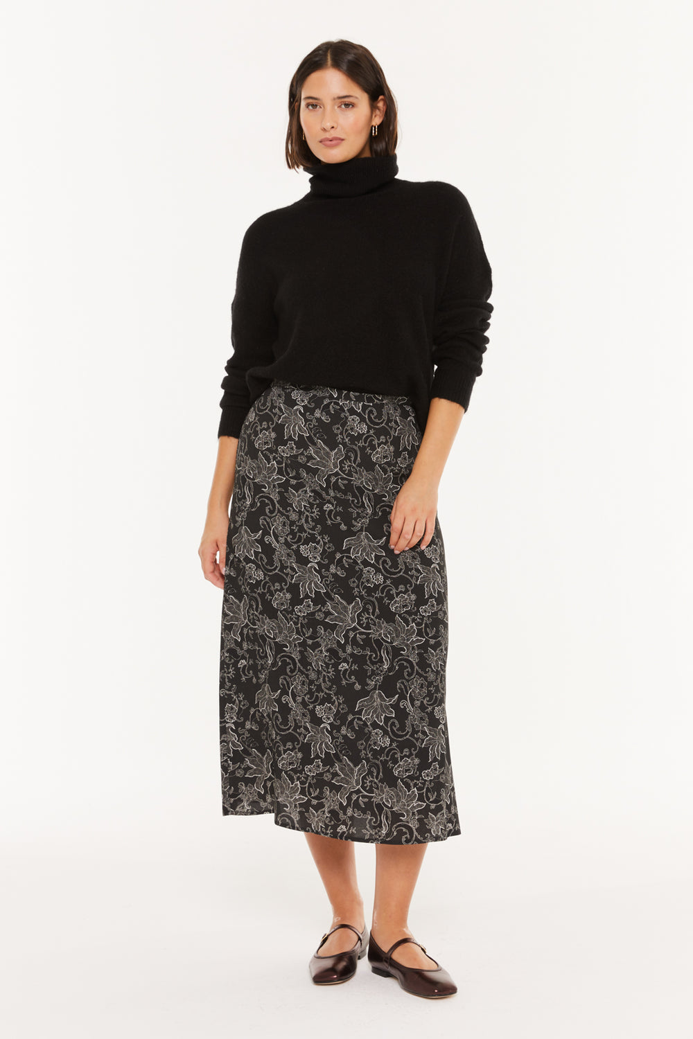 Falda midi mujer con un estampado grande. prenda sostenible.