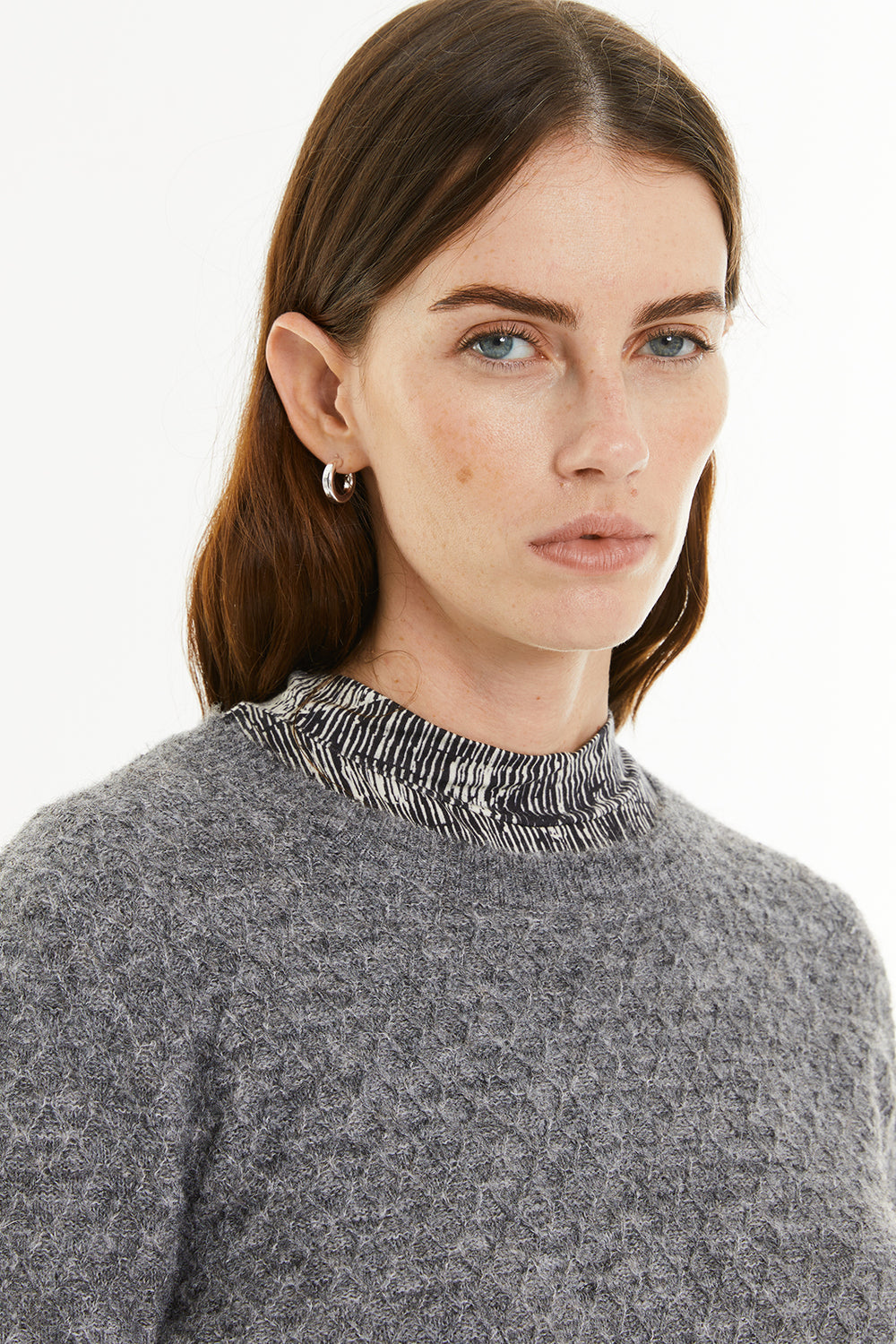 Jersey de mujer con estructura y escote redondo. Prenda sostenible.