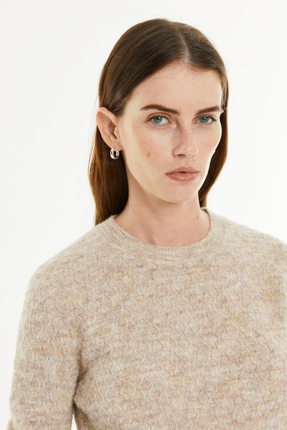 Jersey de mujer con estructura y escote redondo. Prenda sostenible.