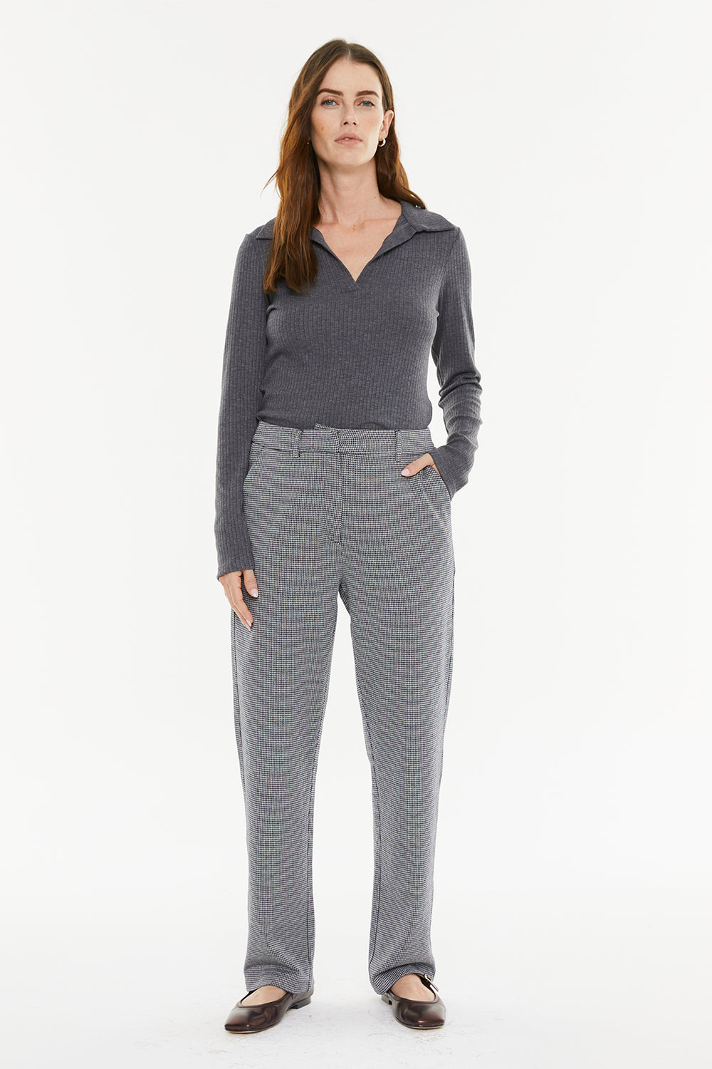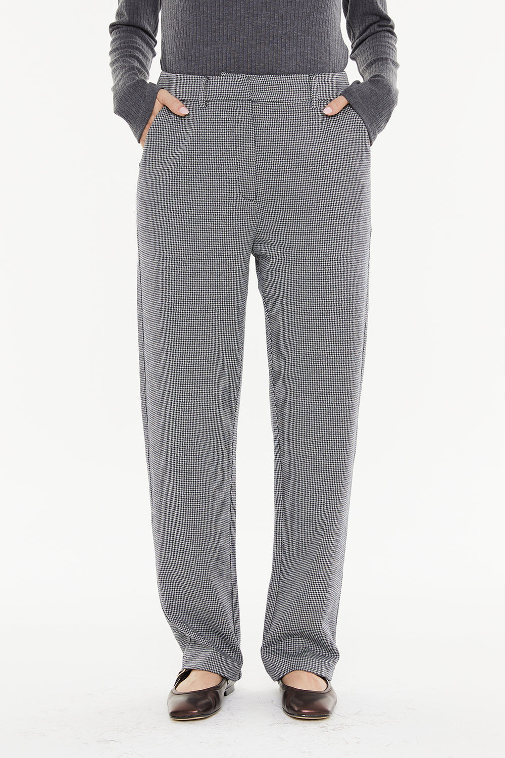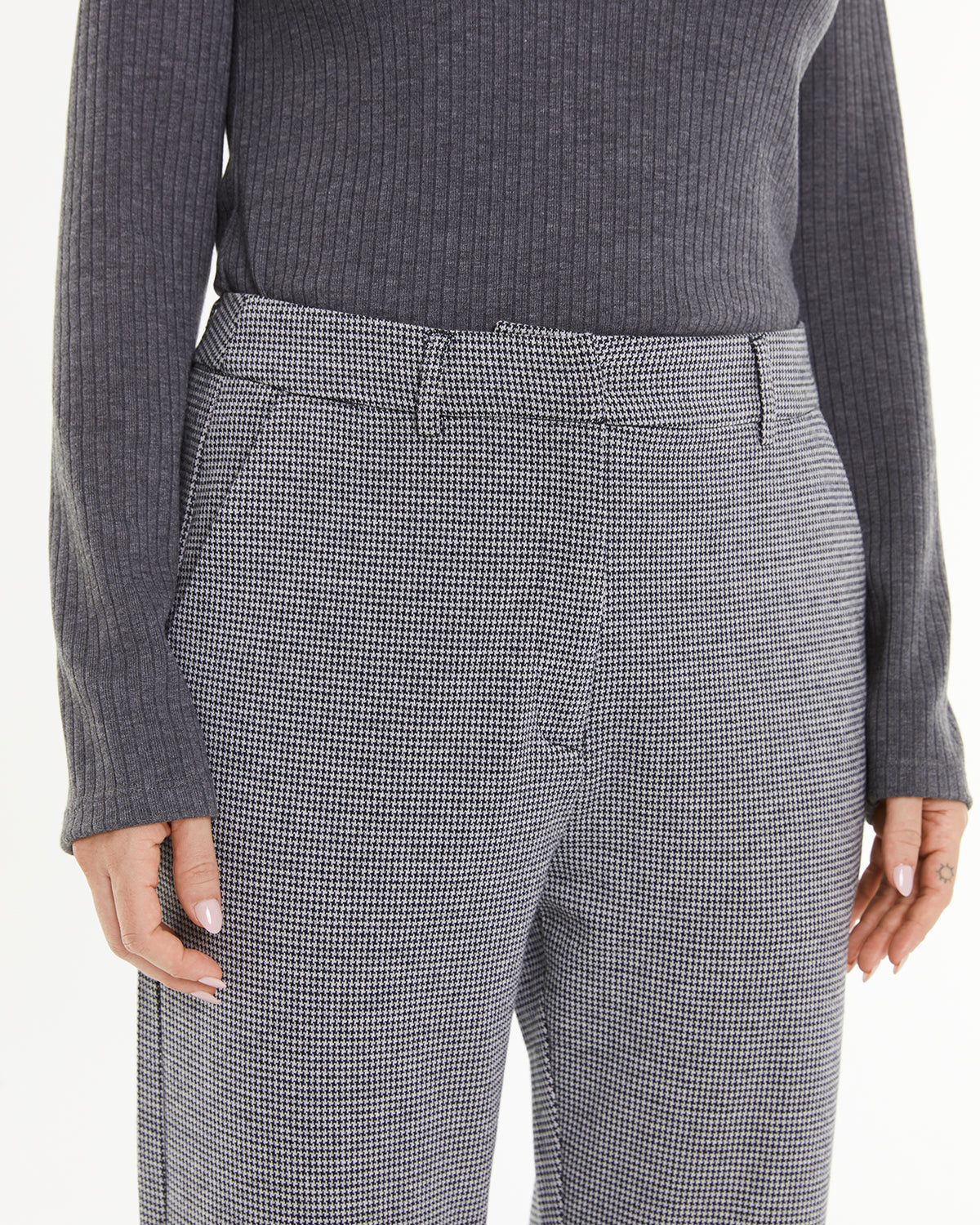 Pantalón mujer con un jacquard geométrico. Cierre con botón.