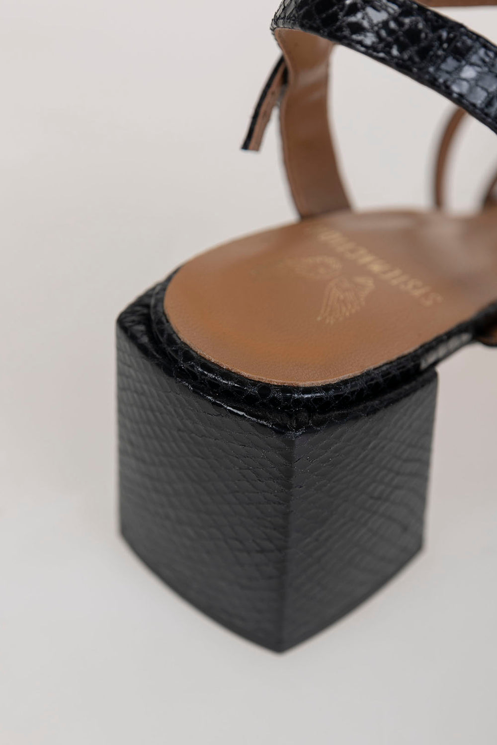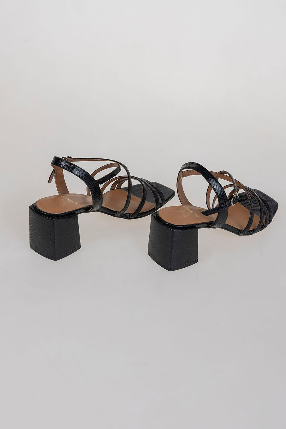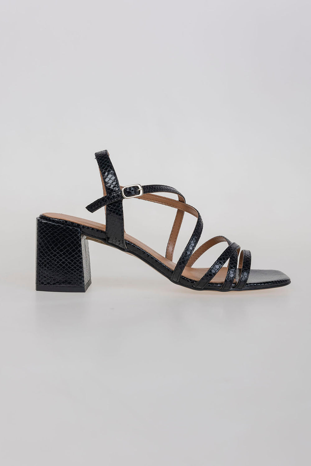 Sandalia negra con tiras de piel