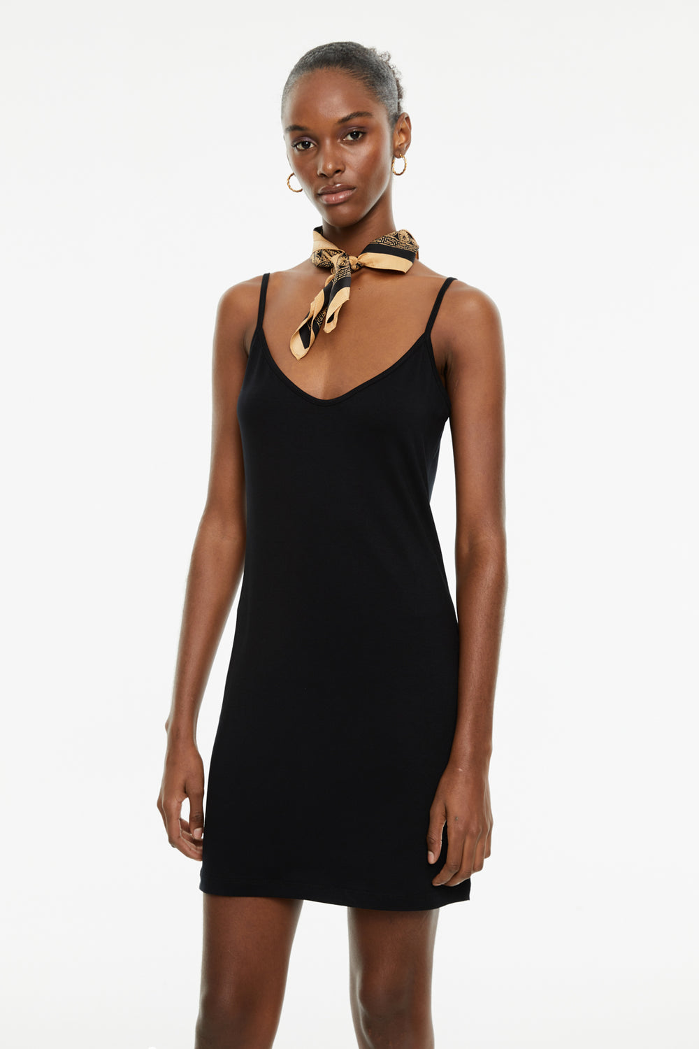Vestido corto, ajustado y tirantes de mujer. Prenda sostenible.